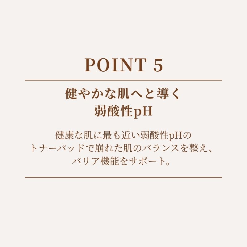 健康な肌に最も近い弱酸性pHのトナーパッドで崩れた肌のバランスを整え、