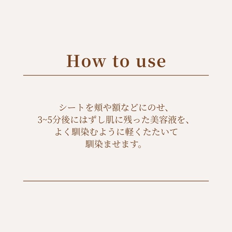 シートを頬や額などにのせ、3~5分後にはずし肌に残った美容液を、