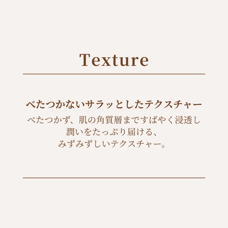 べたつかず、肌の角質層まですばやく浸透し潤いをたっぷり届ける、