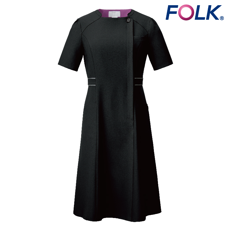 #ノーカラー #イージーケア #ワンピース #フルーレクス #工業洗濯OK #制電 #ストレッチ #吸水速乾 #クルーネック #前ファスナー