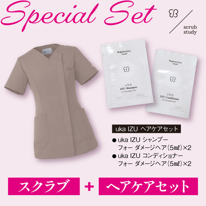 【uka IZUヘアケアセット付】uka scrub study スクラブ UM500 フォギーピンク LL