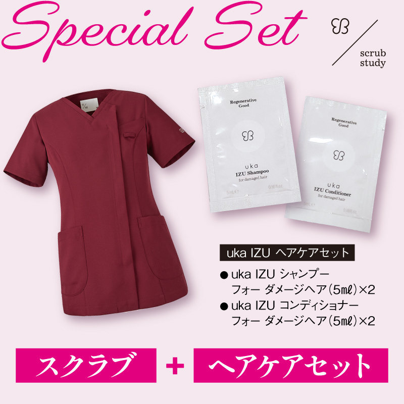 【uka IZUヘアケアセット付】uka scrub study スクラブ UM500 ボルドー M