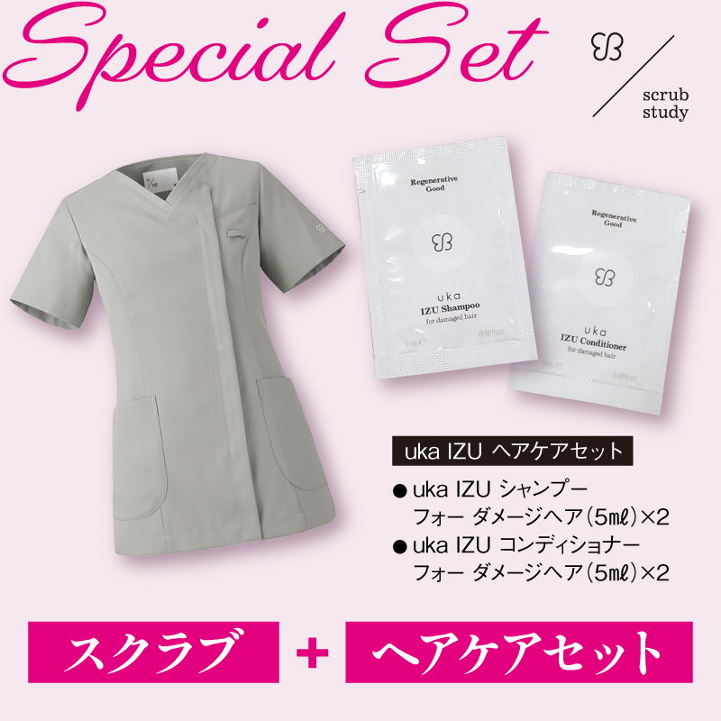 【uka IZUヘアケアセット付】uka scrub study スクラブ UM500 ブルーグレー LL