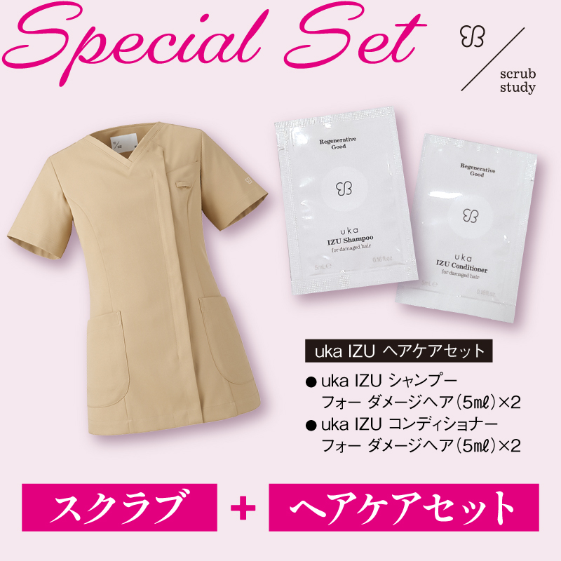 【uka IZUヘアケアセット付】uka scrub study スクラブ UM500 サンドベージュ M