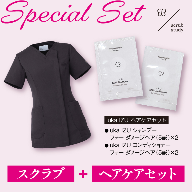 【uka IZUヘアケアセット付】uka scrub study スクラブ UM500 チャコールブラック M