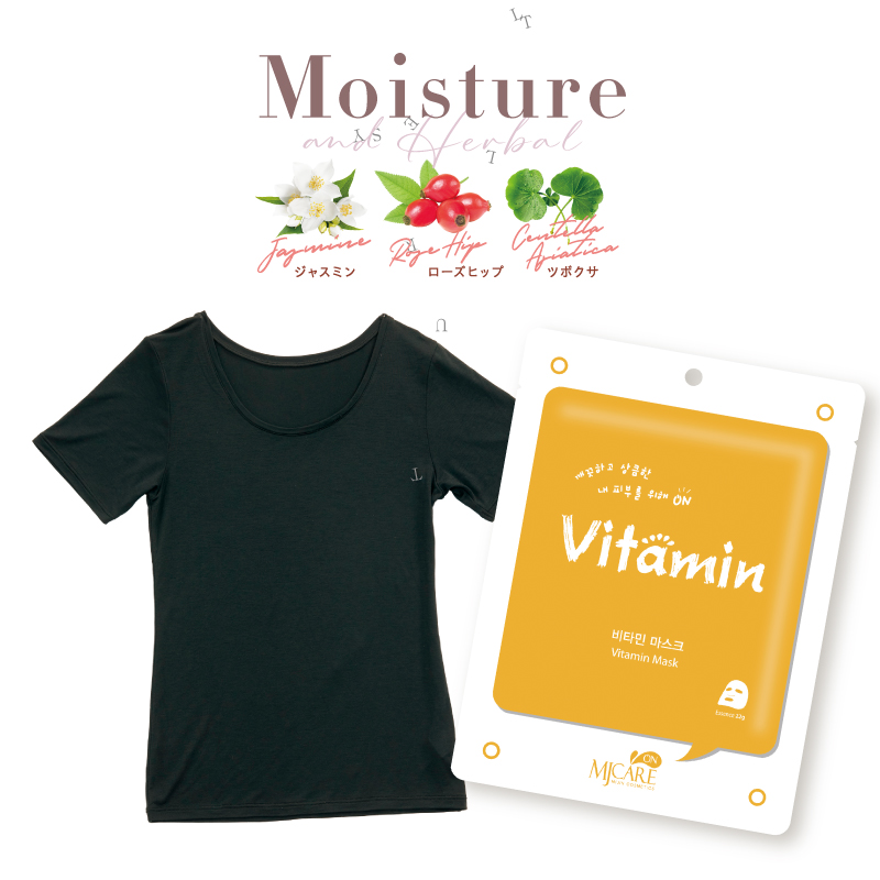 Moisture お肌がよろこぶ植物由来成分加工ジャスミン、ローズヒップ、ツボクサ(シカ)を使用した保湿加工で、しっとりした肌触りを実現。