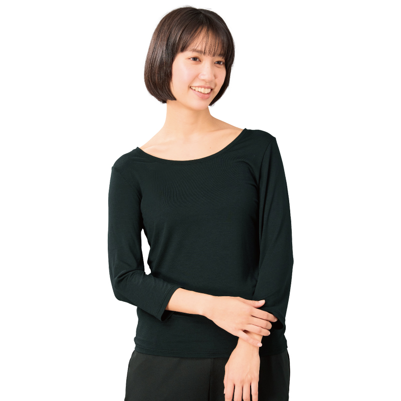 【フェイスパック(ヒアルロン酸)付】モイスチャー7分袖 3976-37 ブラック LL
