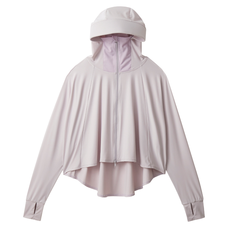 強い日差しの季節も、深めのつば付きフードと指穴設計で手の甲までしっかりガード。