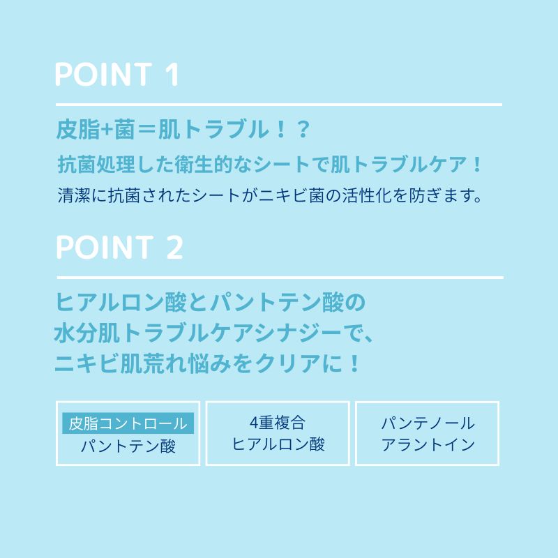 清潔に抗菌されたシートがニキビ菌の活性化を防ぎます。