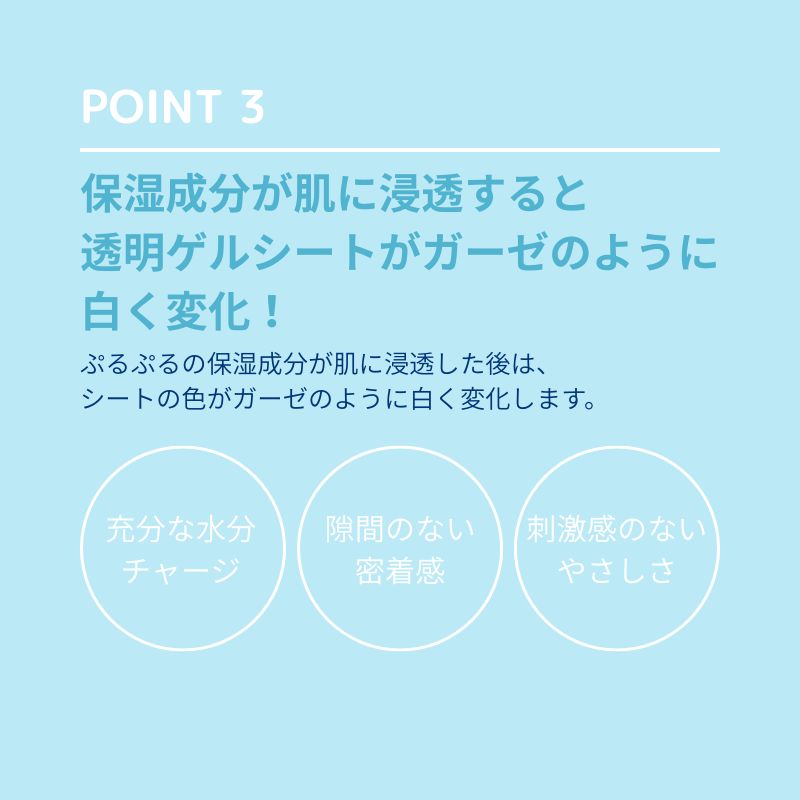 保湿成分が肌に浸透すると透明ゲルシートがガーゼのように白く変化!