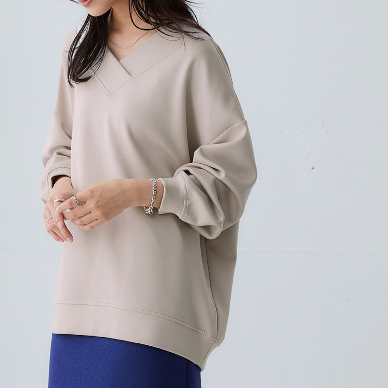 なめらかポンチ素材 前後Vネックプルオーバー グレージュ S 商品ID:802520233 |