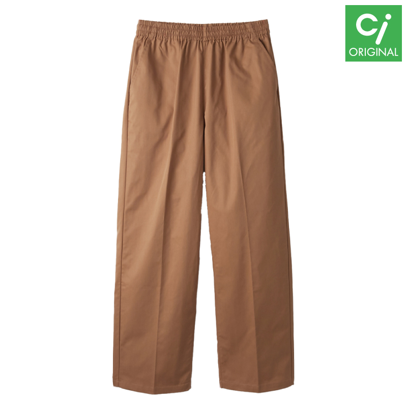 総ゴムウエスト(ひも入り)、両脇ポケット、右後ろポケット、裾上げ済