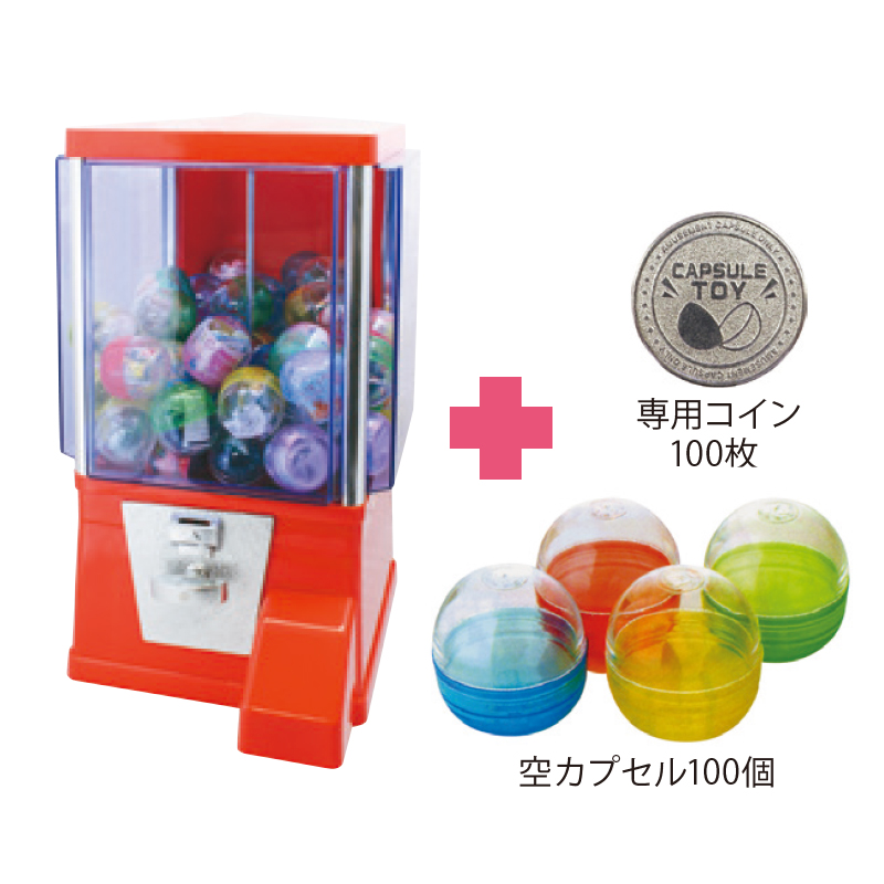 ガチャコップ本体 赤+専用コイン+ガチャカプセル(100個)