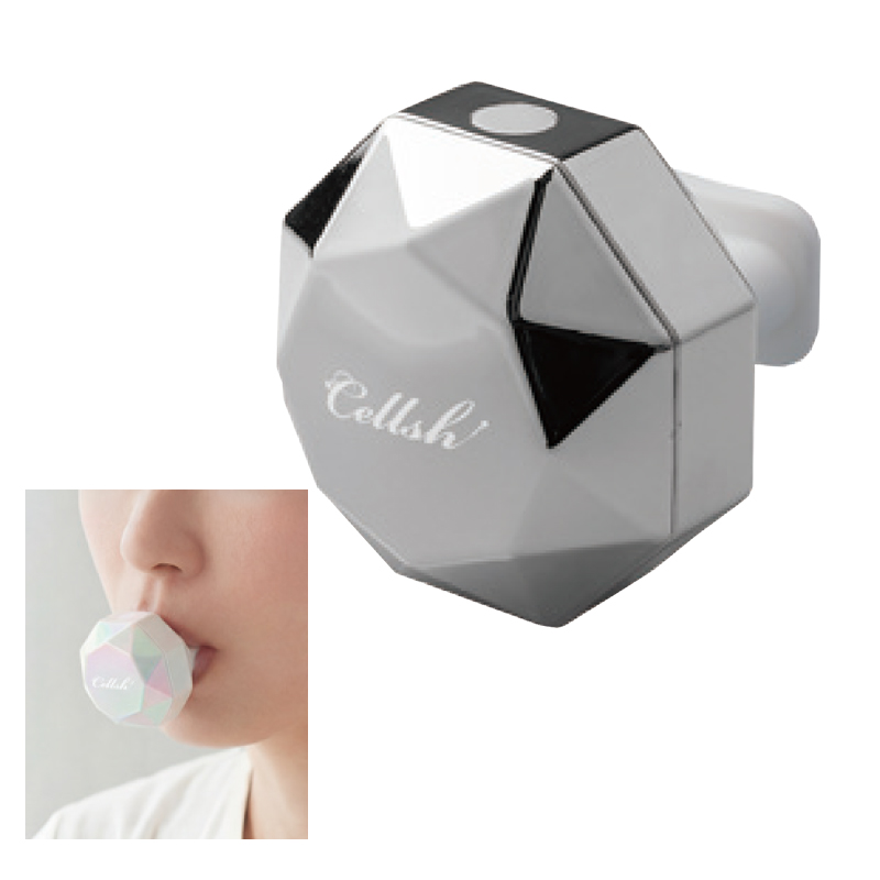 唇でくわえてスイッチを押すだけ。30秒の振動が口元の筋肉にアプローチし、表情の印象を美しく整えるフェイスケアアイテム宝石のように輝く多面体デザインは、洗面台に置くだけで気分が上がる存在感