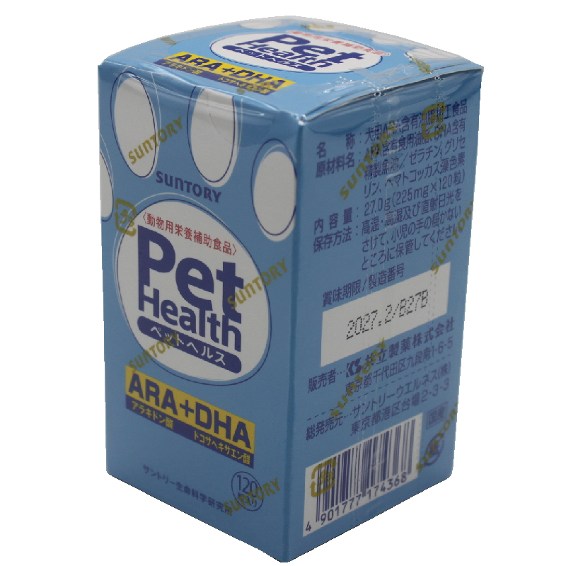 「アラキドン酸(ARA)」と「ドコサヘキサエン酸(DHA)」を1:1のバランスで配合し、さらにアスタキサンチンを加えた動物用栄養補助食品
