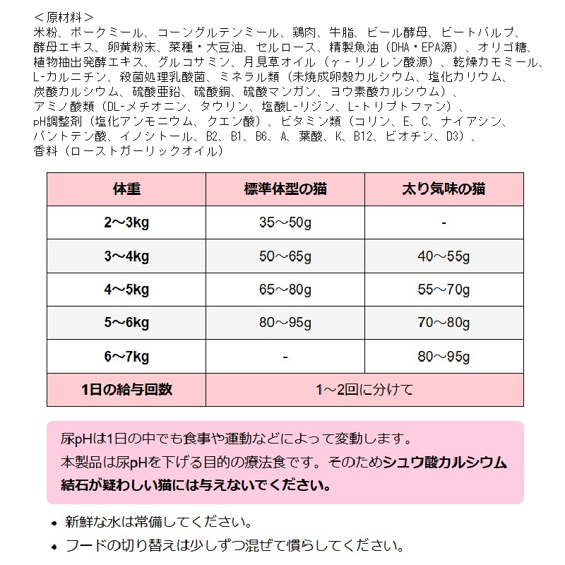 尿pHを6.0~6.4とし、ストルバイト結石の形成を抑えます。