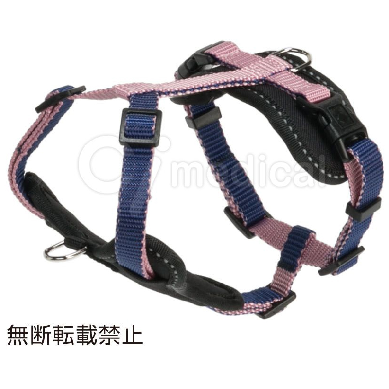 原着ポリエステルを使用しているため、ソフトな仕上りで犬にも優しい素材です。前側Dカンは、前へ引っ張ると、自然に横へ力が加わり、引っ張り抑制に。