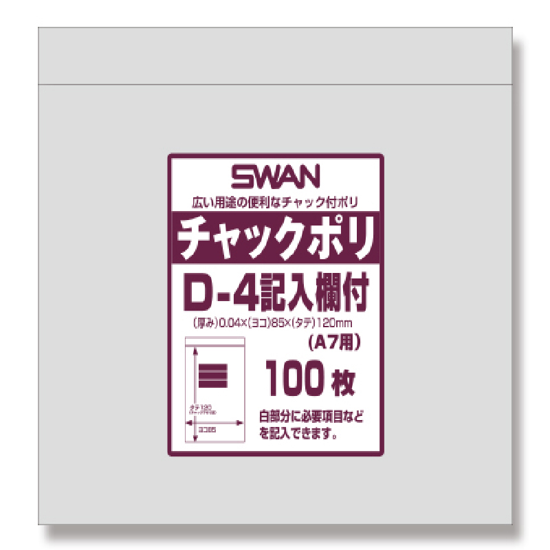 スワン チャック付きポリ袋 記入欄付き D-4記入欄付(A7用) 100枚
