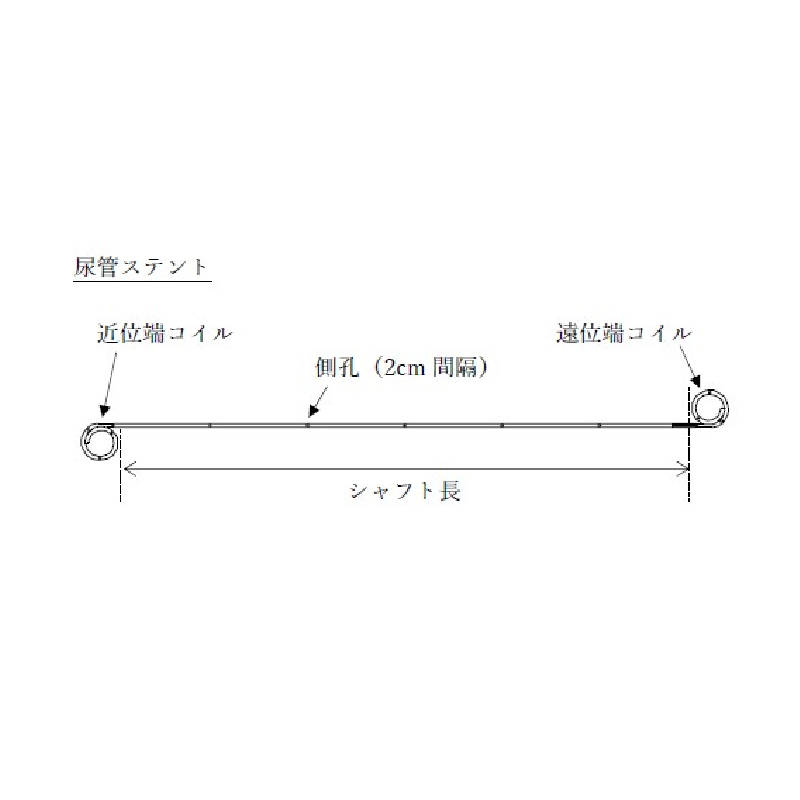 ・シャフト部は全長にわたり側孔(2cm間隔)が配置され、尿はステントの内と外を流れます。