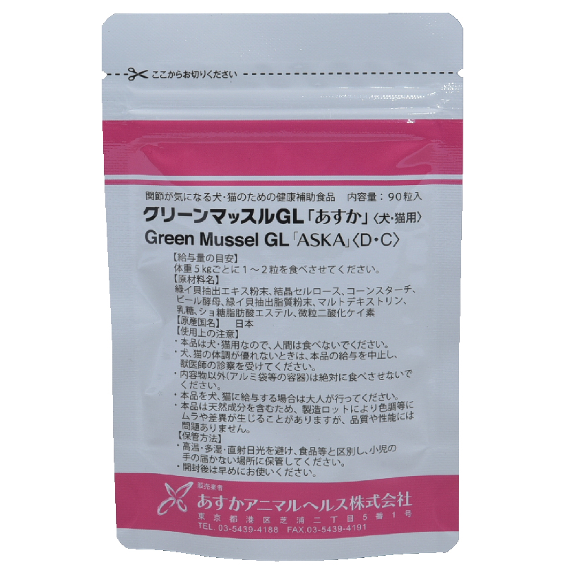 ニュージーランド原産の緑イ貝抽出物を主成分としており、関節の構成成分であるグリコサミノグリカンや高齢動物に必要なDHA・EPAなどが豊富に含まれています。