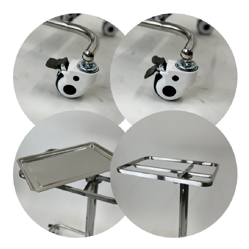 商品寸法 昇降:890~1220(mm)、トレー:W600×D400、キャスター:Φ75mm(ストッパー付)