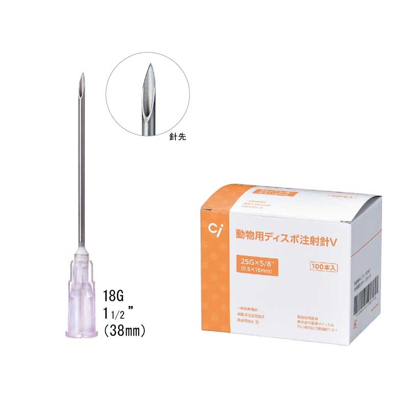 【訳あり】動物用ディスポ注射針V18G11/2(38mm) ピンク RB