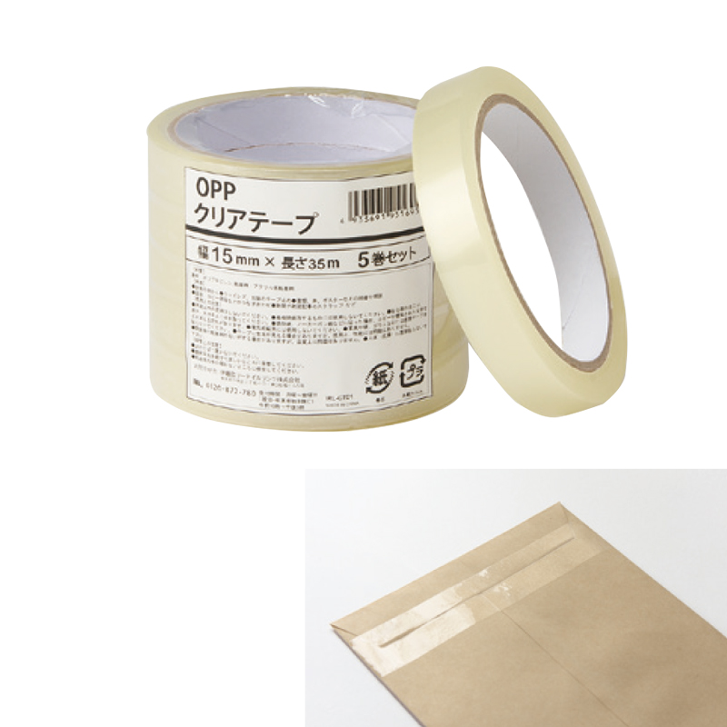 | 材質 | テープ:OPP,アクリル系粘着剤 巻芯:古紙パルプ配合率33% |