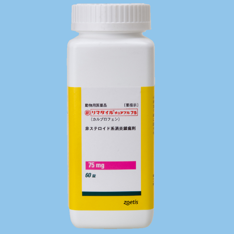 | 成分 | 1錠(1500mg)中カルプロフェン75.000mg |